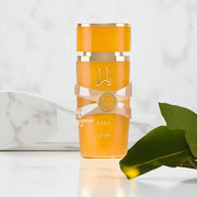 Lattafa Yara Tous Eau de Parfum for Women is a luscious and radiant fragrance that captures the essence of tropical elegance. It opens with a vibrant burst of Coconut, juicy Mango, and exotic Passion Fruit, instantly transporting you to a sun-drenched paradise. As the scent unfolds, a floral heart of Jasmine, delicate Heliotrope, and enchanting Orange Blossom adds a soft, feminine allure. The fragrance lingers with a warm and sensual base of Cashmeran, creamy Vanilla, and velvety Musk, leaving a dreamy and irresistible trail. Yara Tous is a captivating scent for the woman who shines effortlessly—playful, confident, and endlessly enchanting.